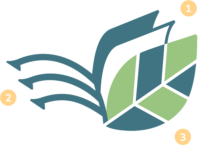 • 以簡約線條勾勒出一本打開的書本,呈現三層書頁,象徵環境教育中不可或缺的「三重環境教育方法」- 包括認識環境、在環境中學習及環境行動。